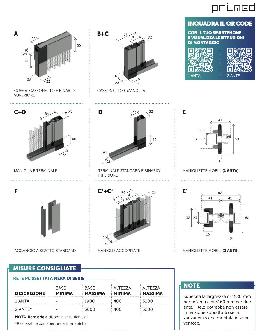 Caratteristiche tecniche zanzariera Smart Primed