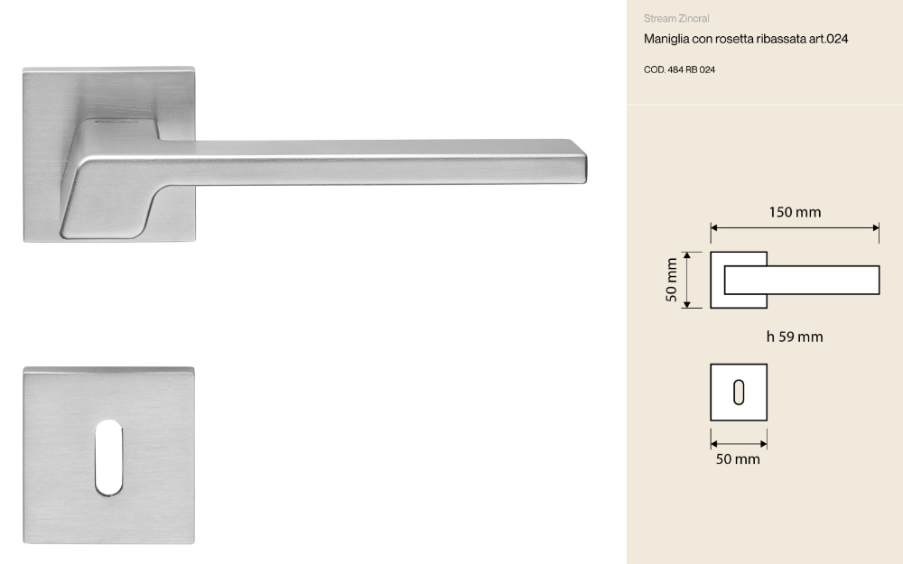 Stream Zincral Linea Calì - Maniglia Moderna per Porta con Rosetta Ribassata