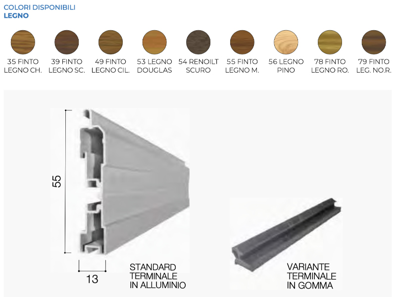 - Dimensioni delle stecche: 13 mm di altezza e 55 mm di larghezza;