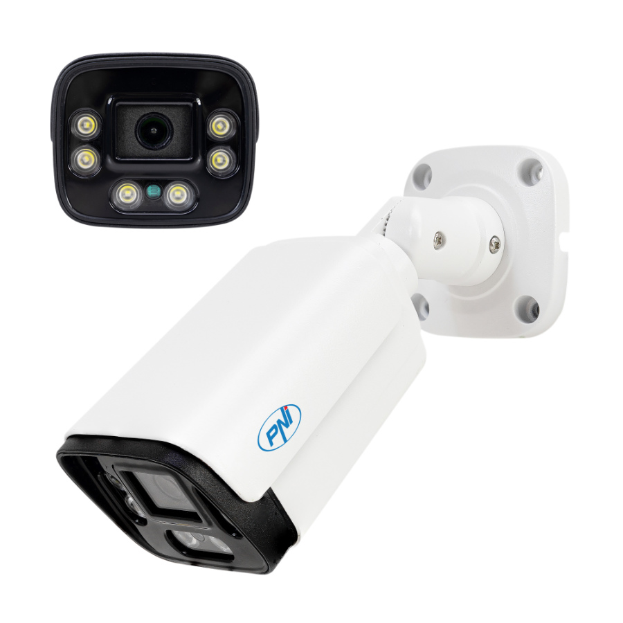 La telecamera PNI IP125 offre chiarezza, colori naturali, contrasto e luminosità ottimale. Progettata per l'esterno (certificazione IP66), è dotata di 6 LED che emettono luce infrarossa e bianca, garantendo visibilità fino a 30 metri anche in condizioni di scarsa illuminazione.