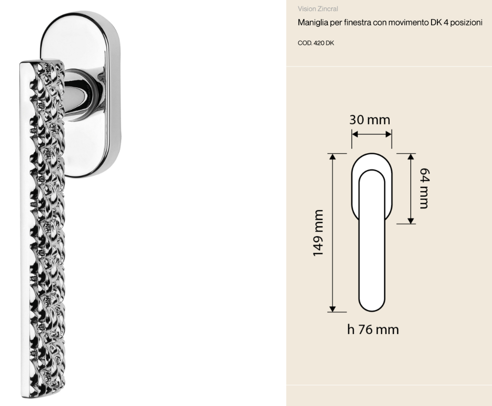 Vision Zincral Linea Calì - Maniglia per Finestra DK - Impugnatura a Rilievo