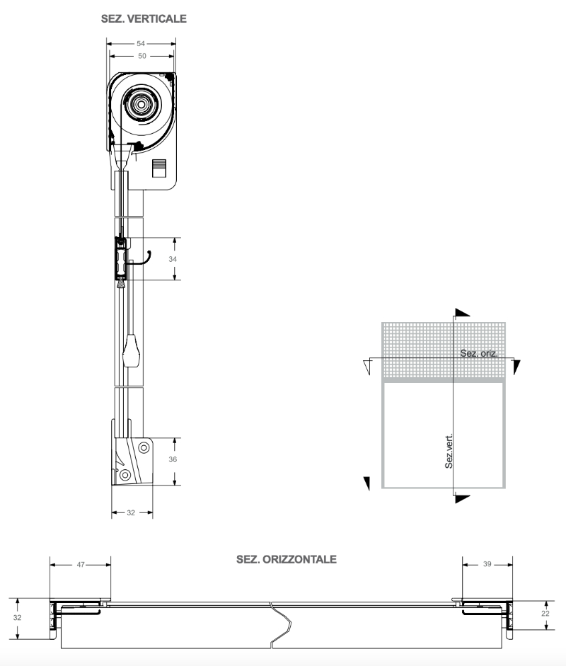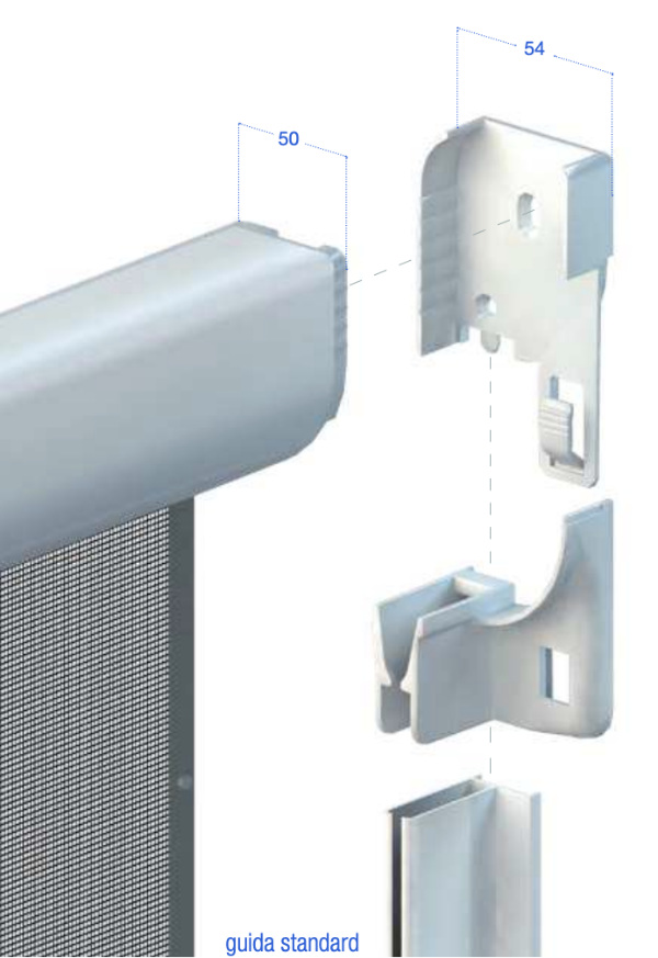 - Cassonetto arrotondato da mm. 50 (massimo ingombro mm 54);