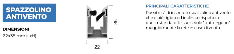 - Optional su richiesta: rallentatore (seleziona la variante frizione), chiusura clic-clac, spazzolino antivento, maggiorazione rete nera (contattaci se interessato);