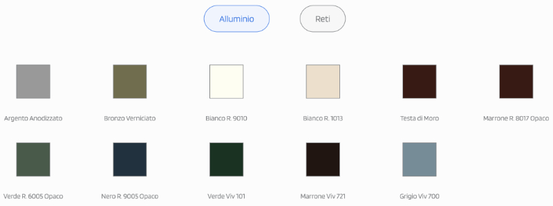 Colorazione alluminio personalizzabile: Scegli tra una vasta gamma di colori per adattare la zanzariera al tuo stile. È possibile richiedere preventivi per colorazioni personalizzate.
