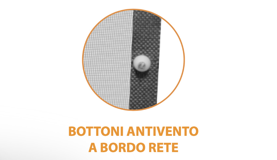- Tipologia della rete: Rete in fibra di vetro grigia, su richiesta rete in fibra nera;